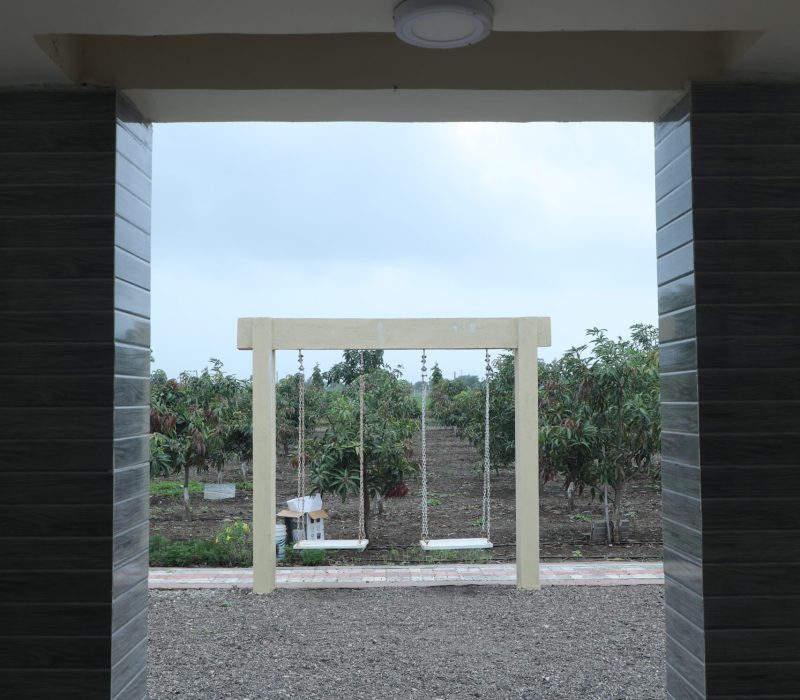 Watch farmers tending the trees, listen to birdsong, and catch glimpses of swimmers in the sparkling pool—all from the comfort of your shaded verandah.