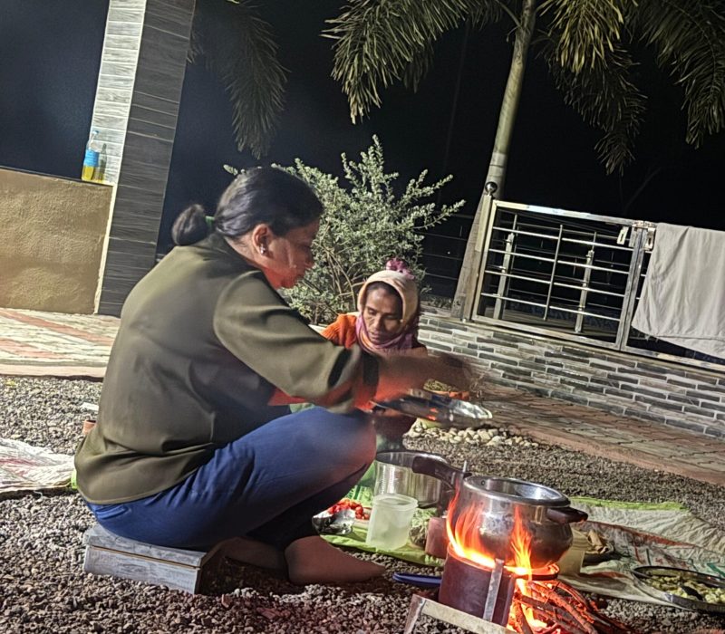 A modern gas stove for effortless meal prep inside, plus a natural‐style wood‐fire stove outdoors for authentic farm‑style cooking.